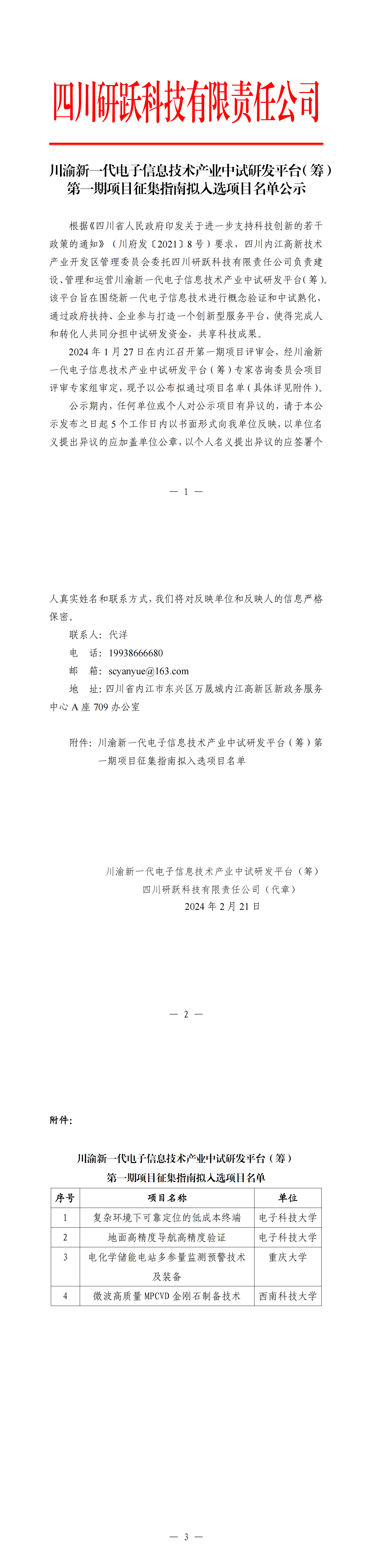 川渝新一代电子信息技术产业中试研发平台(筹)